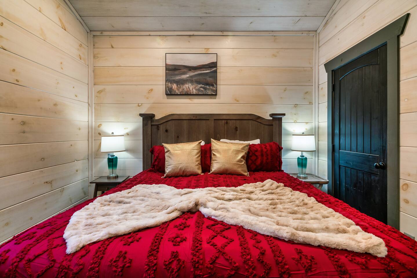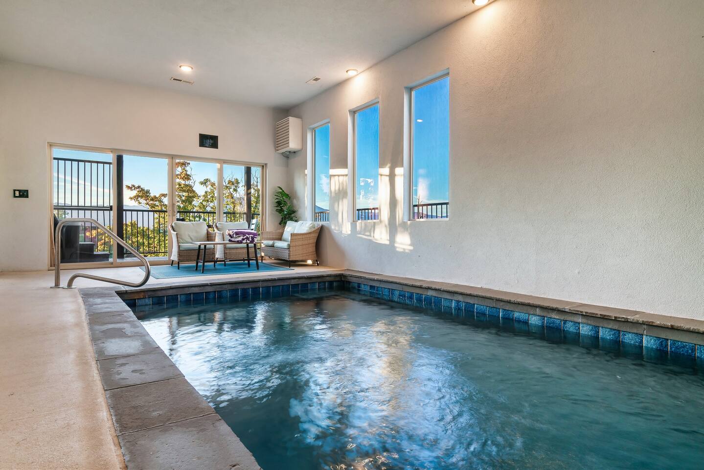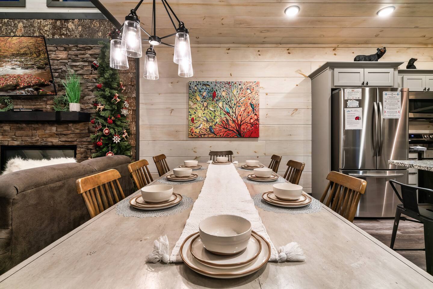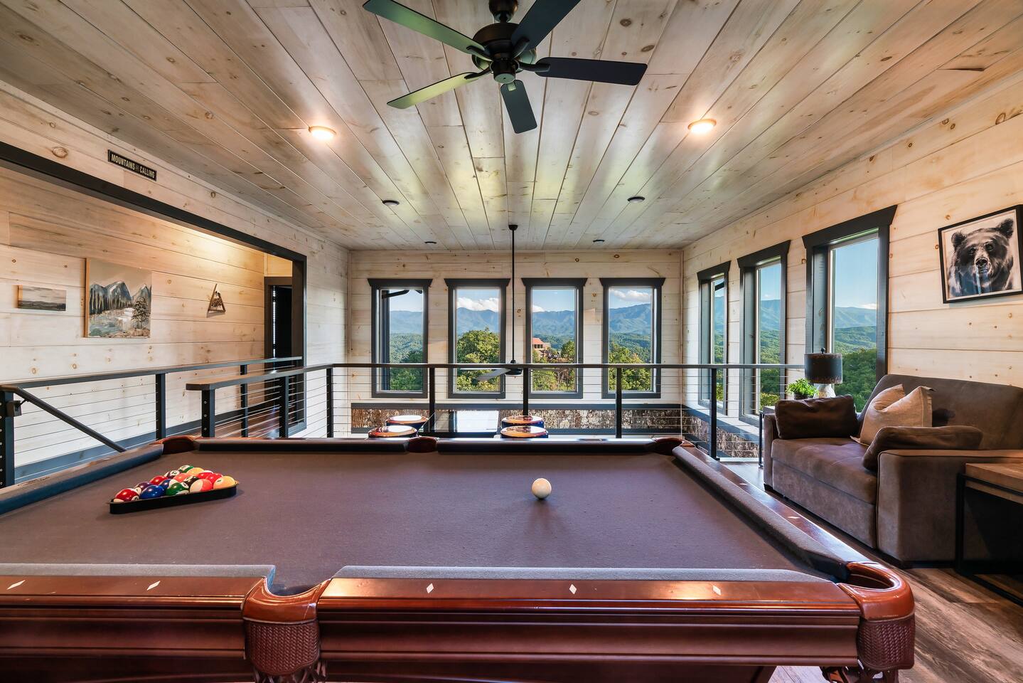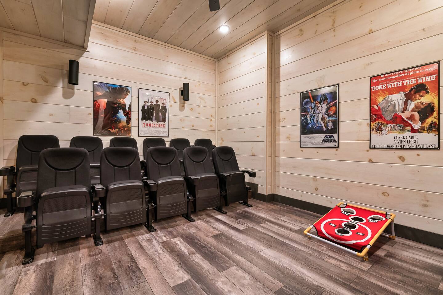 5 Spacious Bedrooms ๐ Main Level Bedroom 1: En-Suite King Bed + Smart TV + Electric Fireplace ๐๏ธ Main Level Bedroom 2: Twin bunk bed over Queen bed + Smart TV ๐ Upper Level Bedroom 1: En-Suite King Bed + Smart TV ๐ Upper Level Bedroom 2: En-Suite King Bed + Smart TV ๐ Lower Level Bedroom: En-Suite King Bed + Smart TV ๐ณ Fully equipped kitchen, ready to create delicious feasts for your whole group ๐ฝ๏ธ! ๐๏ธ Large Living Room: Double stacks of windows for natural light & views, electric fireplace, TV ๐ฑ Loaded Game Room: Pool table, Infinity Arcade1Up, Nerf Gun Wall, Arcade game, Board games, TV, and stunning views ๐ง Private Heated Indoor Pool with soothing fountain ๐โโ๏ธ ๐ Private Deck 1 โ Soak in sweeping mountain vistas, sizzle dinner on the gas BBQ, and unwind in comfy rocking chairs ๐๏ธ๐๐ช ๐ Private Deck 2 โ Breathtaking views, relaxing hot tub, crackling fire pit, and cozy seating ๐๏ธ๐๐ฅ ๐ถ Complimentary High-Speed Internet โ Stream, work, or game โ๏ธ 3 ACs & Heating for your comfort ๐งบ Washer and Dryer ๐ฅ Outdoor small charcoal BBQ Grill ๐ก Clubhouse Access: Enjoy the large seasonal pool, steam room, sauna & gym Our spacious cabin comfortably sleeps 12 guests across 5 tastefully designed bedrooms, each with its own private bathroom for added privacy. The large, open-concept living area features high ceilings, oversized double stack of windows that showcase the spectacular mountain views, and plenty of space for gathering with your group. Step outside onto the expansive deck, where you'll be greeted by breathtaking views of the Smoky Hills. Sip your morning coffee while watching the sunrise, or relax in the evening as the stars fill the sky. ๐๏ธ BEDROOMS ๐๏ธ This stunning three-story cabin features five beautifully designed and luxurious bedrooms. Four of the bedrooms are furnished with king-sized beds and include private ensuite bathrooms for added comfort and privacy. The fifth bedroom, located on the main level, offers a twin-over-queen bed, perfect for accommodating additional guests. Three of the bedrooms showcase large windows that offer incredible views, while all bedrooms come equipped with flat-screen smart TVs for your entertainment. ๐ BATHROOMS ๐ The five bathrooms are conveniently located across three levels, with one on each level easily accessible from the common areas for added guest comfort. Four of the five bedrooms feature private ensuite bathrooms, offering extra privacy for each guest. The lower level includes a Jack and Jill bathroom, accessible from both the bedroom and the pool entrance. Each bathroom is beautifully appointed, boasting luxurious tile work, large modern vanities, and either a walk-in shower (four) or a relaxing bathtub (one). ๐ฉโ๐ณ KITCHEN & LOUNGE๐ฉโ๐ณ Enjoy preparing meals in the spacious, fully-equipped kitchen featuring stainless steel appliances, a large island, and ample pantry storage. Whether you're grabbing a quick snack at the island or gathering around the formal dining table for a full meal, this kitchen has everything you need, including a coffee maker, microwave, stove, oven, and all essential utensils. The open floor plan ensures that even with a full house, the kitchen remains comfortable and functional for everyone. Just beyond the kitchen, step into the stunning living room, where a high vaulted ceiling and a wall of double-height windows frame sweeping panoramic views. The space is anchored by a large electric fireplace, a flat-screen TV, and a luxurious sofa set, creating an inviting spot to relax and unwind. Whether you're savoring freshly prepared meals from the kitchen or simply lounging and soaking in the breathtaking sunrise or sunset, this living area is designed for making lasting memories together. ๐ POOL ๐ The lower level boasts a spacious private heated pool room, complete with a soothing fountain that adds a calming ambiance. Whether you're in the mood for a swim workout or a relaxing float, the tranquil sound of the fountain enhances the experience. A conveniently located adjoining bathroom provides both privacy and ease. The pool room also includes a comfortable seating area, with glass doors that open to the deck, allowing natural light to flood the space while offering picturesque views. ๐โจ๏ธ HOT TUB โจ๏ธ๐ Situated on the lower deck, the hot tub provides a private oasis where guests can unwind while taking in stunning panoramic views. It comfortably accommodates up to five people, offering the perfect spot to relax and enjoy the serene surroundings. ๐ฅ MOVIE THEATER ๐ฅ Head down to the lower-level theater room for an immersive movie experience, complete with your favorite snacks. Whether you're watching classic films, contemporary hits, or bringing your own videos, this space offers seating for 11 guests with additional room to spare, making it the ideal setting for a cozy movie night. โฅ๏ธโฅ๏ธBook today and make priceless memories!