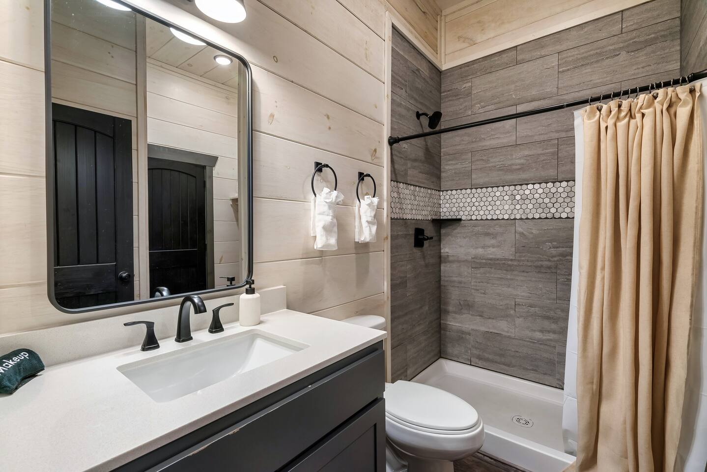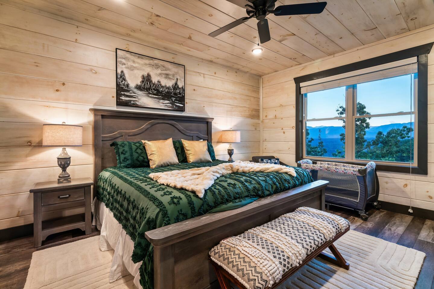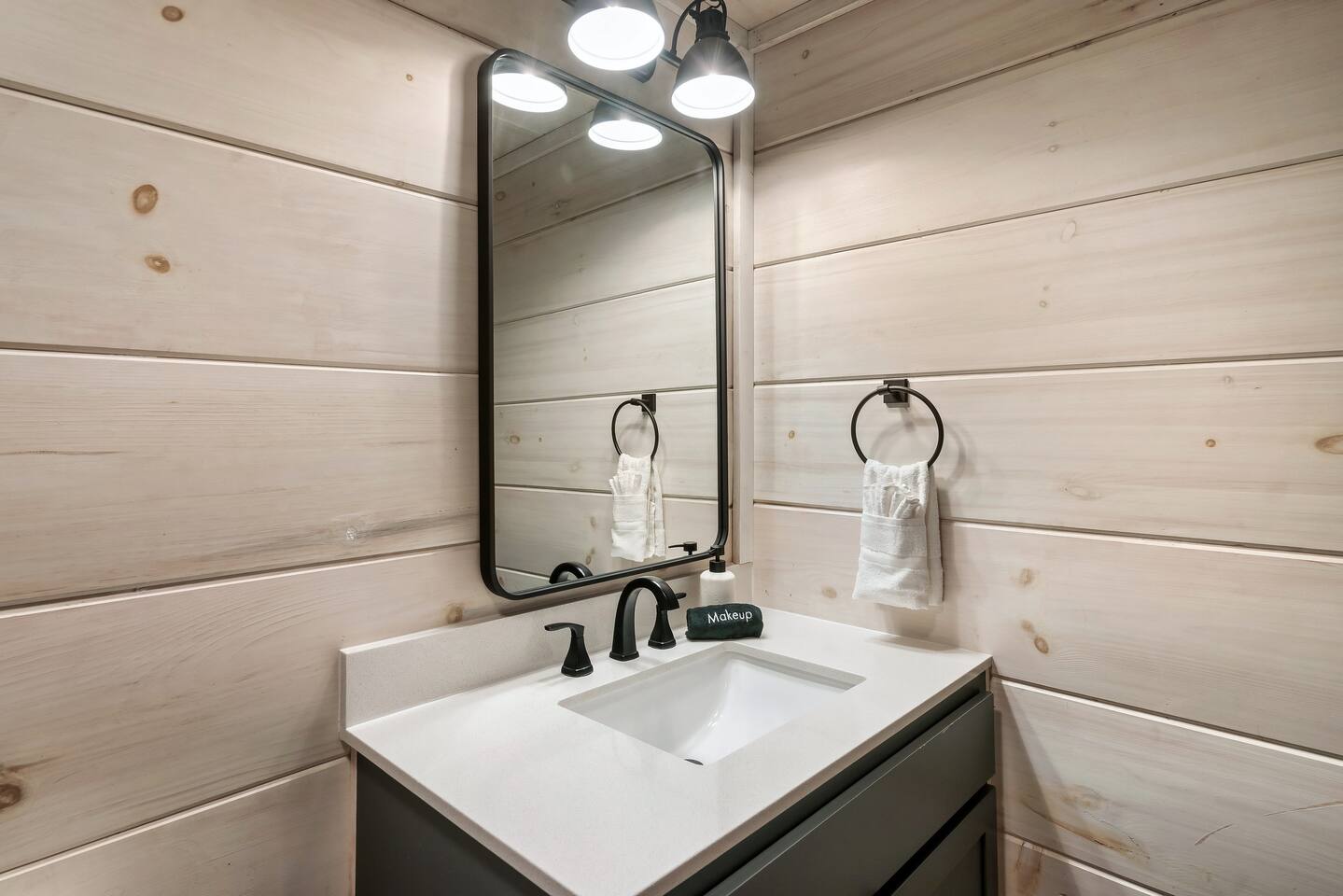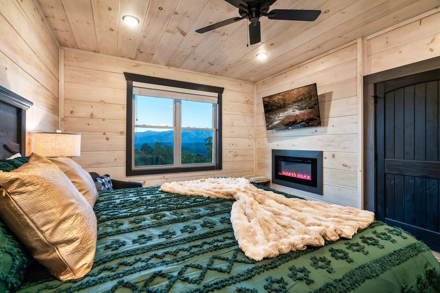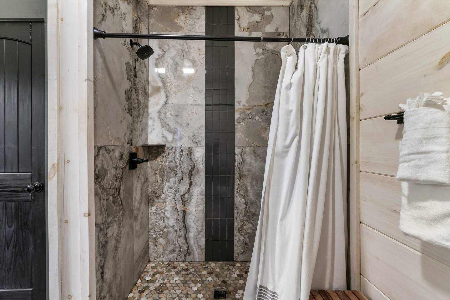 5 Spacious Bedrooms ๐ Main Level Bedroom 1: En-Suite King Bed + Smart TV + Electric Fireplace ๐๏ธ Main Level Bedroom 2: Twin bunk bed over Queen bed + Smart TV ๐ Upper Level Bedroom 1: En-Suite King Bed + Smart TV ๐ Upper Level Bedroom 2: En-Suite King Bed + Smart TV ๐ Lower Level Bedroom: En-Suite King Bed + Smart TV ๐ณ Fully equipped kitchen, ready to create delicious feasts for your whole group ๐ฝ๏ธ! ๐๏ธ Large Living Room: Double stacks of windows for natural light & views, electric fireplace, TV ๐ฑ Loaded Game Room: Pool table, Infinity Arcade1Up, Nerf Gun Wall, Arcade game, Board games, TV, and stunning views ๐ง Private Heated Indoor Pool with soothing fountain ๐โโ๏ธ ๐ Private Deck 1 โ Soak in sweeping mountain vistas, sizzle dinner on the gas BBQ, and unwind in comfy rocking chairs ๐๏ธ๐๐ช ๐ Private Deck 2 โ Breathtaking views, relaxing hot tub, crackling fire pit, and cozy seating ๐๏ธ๐๐ฅ ๐ถ Complimentary High-Speed Internet โ Stream, work, or game โ๏ธ 3 ACs & Heating for your comfort ๐งบ Washer and Dryer ๐ฅ Outdoor small charcoal BBQ Grill ๐ก Clubhouse Access: Enjoy the large seasonal pool, steam room, sauna & gym Our spacious cabin comfortably sleeps 12 guests across 5 tastefully designed bedrooms, each with its own private bathroom for added privacy. The large, open-concept living area features high ceilings, oversized double stack of windows that showcase the spectacular mountain views, and plenty of space for gathering with your group. Step outside onto the expansive deck, where you'll be greeted by breathtaking views of the Smoky Hills. Sip your morning coffee while watching the sunrise, or relax in the evening as the stars fill the sky. ๐๏ธ BEDROOMS ๐๏ธ This stunning three-story cabin features five beautifully designed and luxurious bedrooms. Four of the bedrooms are furnished with king-sized beds and include private ensuite bathrooms for added comfort and privacy. The fifth bedroom, located on the main level, offers a twin-over-queen bed, perfect for accommodating additional guests. Three of the bedrooms showcase large windows that offer incredible views, while all bedrooms come equipped with flat-screen smart TVs for your entertainment. ๐ BATHROOMS ๐ The five bathrooms are conveniently located across three levels, with one on each level easily accessible from the common areas for added guest comfort. Four of the five bedrooms feature private ensuite bathrooms, offering extra privacy for each guest. The lower level includes a Jack and Jill bathroom, accessible from both the bedroom and the pool entrance. Each bathroom is beautifully appointed, boasting luxurious tile work, large modern vanities, and either a walk-in shower (four) or a relaxing bathtub (one). ๐ฉโ๐ณ KITCHEN & LOUNGE๐ฉโ๐ณ Enjoy preparing meals in the spacious, fully-equipped kitchen featuring stainless steel appliances, a large island, and ample pantry storage. Whether you're grabbing a quick snack at the island or gathering around the formal dining table for a full meal, this kitchen has everything you need, including a coffee maker, microwave, stove, oven, and all essential utensils. The open floor plan ensures that even with a full house, the kitchen remains comfortable and functional for everyone. Just beyond the kitchen, step into the stunning living room, where a high vaulted ceiling and a wall of double-height windows frame sweeping panoramic views. The space is anchored by a large electric fireplace, a flat-screen TV, and a luxurious sofa set, creating an inviting spot to relax and unwind. Whether you're savoring freshly prepared meals from the kitchen or simply lounging and soaking in the breathtaking sunrise or sunset, this living area is designed for making lasting memories together. ๐ POOL ๐ The lower level boasts a spacious private heated pool room, complete with a soothing fountain that adds a calming ambiance. Whether you're in the mood for a swim workout or a relaxing float, the tranquil sound of the fountain enhances the experience. A conveniently located adjoining bathroom provides both privacy and ease. The pool room also includes a comfortable seating area, with glass doors that open to the deck, allowing natural light to flood the space while offering picturesque views. ๐โจ๏ธ HOT TUB โจ๏ธ๐ Situated on the lower deck, the hot tub provides a private oasis where guests can unwind while taking in stunning panoramic views. It comfortably accommodates up to five people, offering the perfect spot to relax and enjoy the serene surroundings. ๐ฅ MOVIE THEATER ๐ฅ Head down to the lower-level theater room for an immersive movie experience, complete with your favorite snacks. Whether you're watching classic films, contemporary hits, or bringing your own videos, this space offers seating for 11 guests with additional room to spare, making it the ideal setting for a cozy movie night. โฅ๏ธโฅ๏ธBook today and make priceless memories!