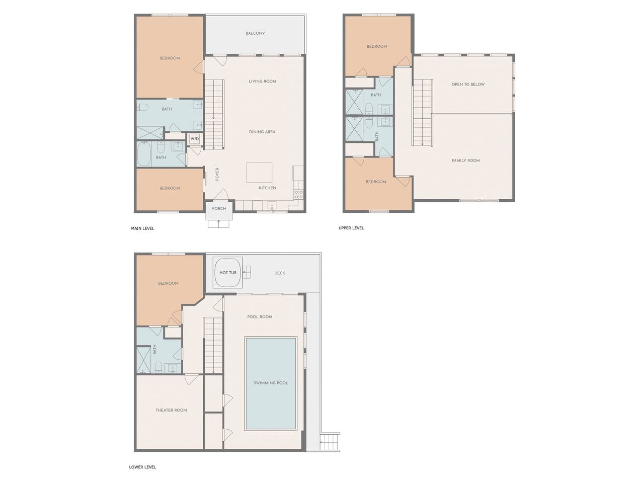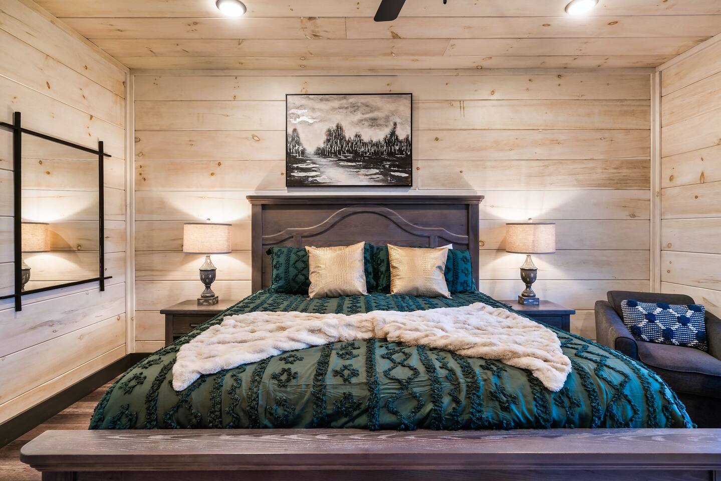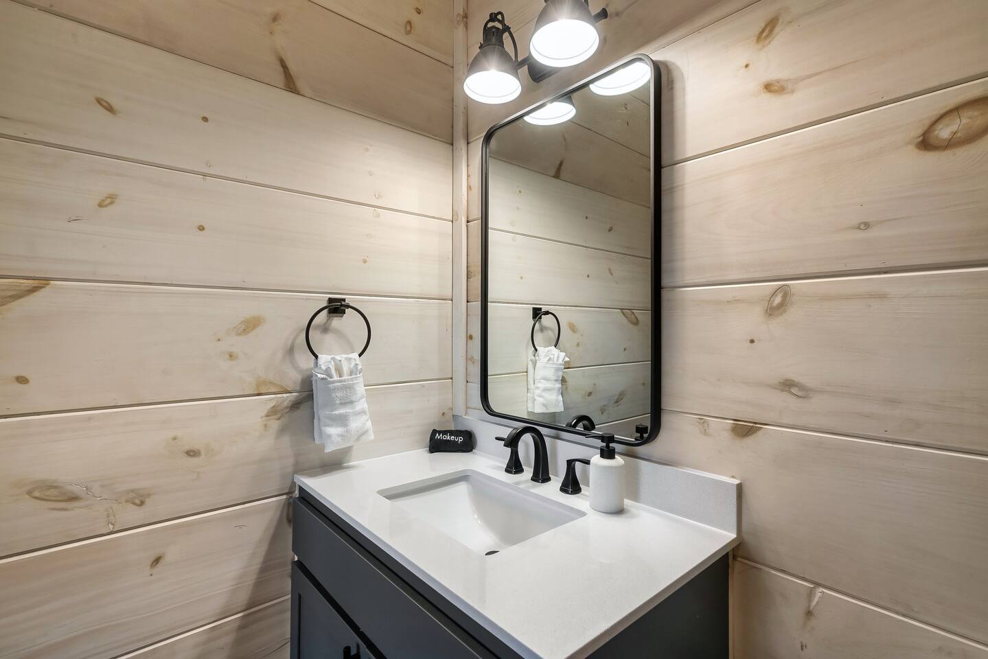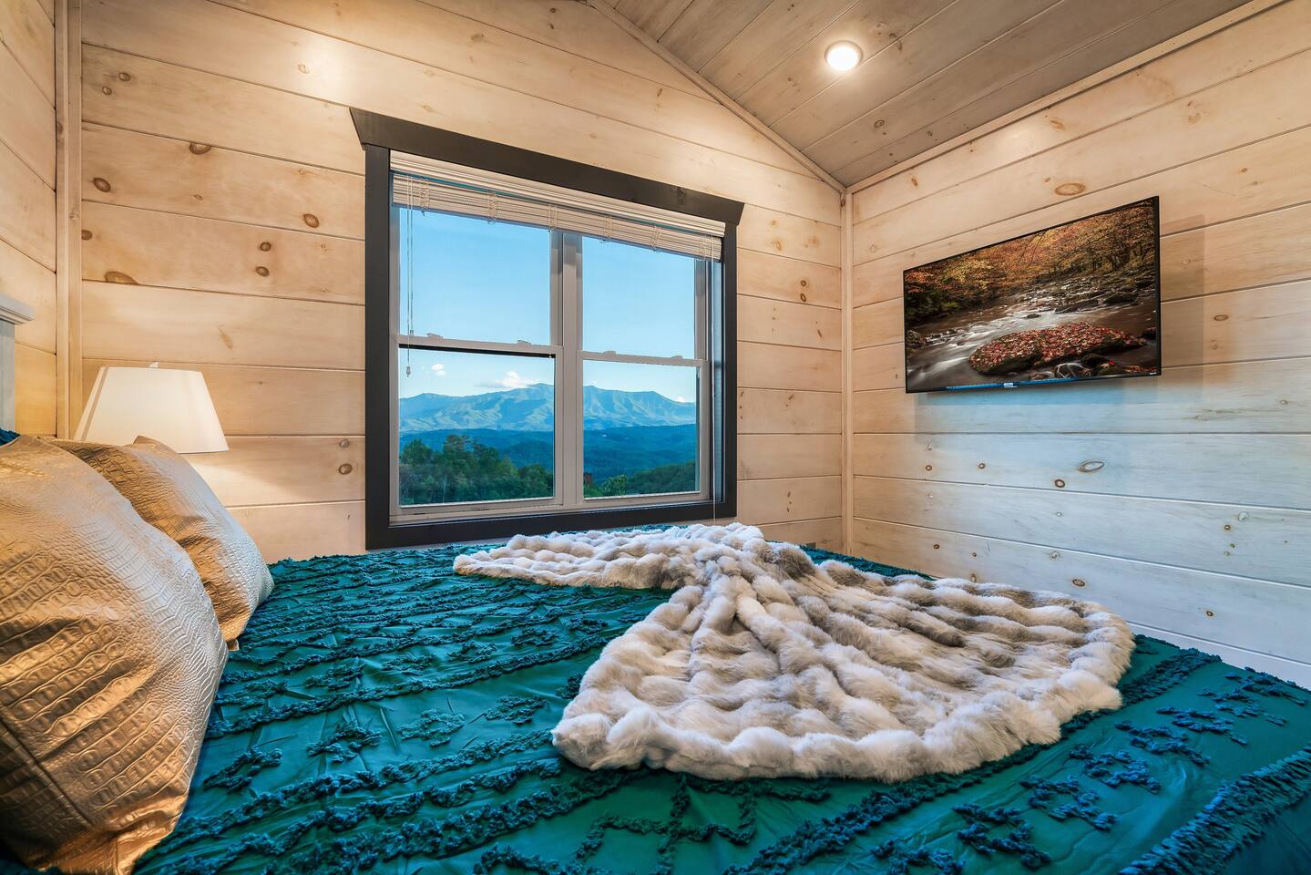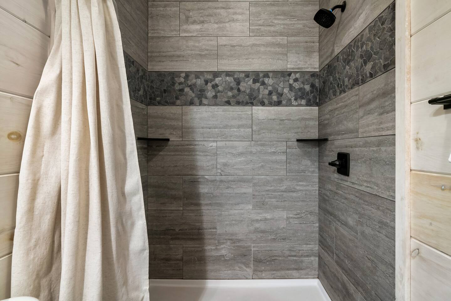 5 Spacious Bedrooms ๐ Main Level Bedroom 1: En-Suite King Bed + Smart TV + Electric Fireplace ๐๏ธ Main Level Bedroom 2: Twin bunk bed over Queen bed + Smart TV ๐ Upper Level Bedroom 1: En-Suite King Bed + Smart TV ๐ Upper Level Bedroom 2: En-Suite King Bed + Smart TV ๐ Lower Level Bedroom: En-Suite King Bed + Smart TV ๐ณ Fully equipped kitchen, ready to create delicious feasts for your whole group ๐ฝ๏ธ! ๐๏ธ Large Living Room: Double stacks of windows for natural light & views, electric fireplace, TV ๐ฑ Loaded Game Room: Pool table, Infinity Arcade1Up, Nerf Gun Wall, Arcade game, Board games, TV, and stunning views ๐ง Private Heated Indoor Pool with soothing fountain ๐โโ๏ธ ๐ Private Deck 1 โ Soak in sweeping mountain vistas, sizzle dinner on the gas BBQ, and unwind in comfy rocking chairs ๐๏ธ๐๐ช ๐ Private Deck 2 โ Breathtaking views, relaxing hot tub, crackling fire pit, and cozy seating ๐๏ธ๐๐ฅ ๐ถ Complimentary High-Speed Internet โ Stream, work, or game โ๏ธ 3 ACs & Heating for your comfort ๐งบ Washer and Dryer ๐ฅ Outdoor small charcoal BBQ Grill ๐ก Clubhouse Access: Enjoy the large seasonal pool, steam room, sauna & gym Our spacious cabin comfortably sleeps 12 guests across 5 tastefully designed bedrooms, each with its own private bathroom for added privacy. The large, open-concept living area features high ceilings, oversized double stack of windows that showcase the spectacular mountain views, and plenty of space for gathering with your group. Step outside onto the expansive deck, where you'll be greeted by breathtaking views of the Smoky Hills. Sip your morning coffee while watching the sunrise, or relax in the evening as the stars fill the sky. ๐๏ธ BEDROOMS ๐๏ธ This stunning three-story cabin features five beautifully designed and luxurious bedrooms. Four of the bedrooms are furnished with king-sized beds and include private ensuite bathrooms for added comfort and privacy. The fifth bedroom, located on the main level, offers a twin-over-queen bed, perfect for accommodating additional guests. Three of the bedrooms showcase large windows that offer incredible views, while all bedrooms come equipped with flat-screen smart TVs for your entertainment. ๐ BATHROOMS ๐ The five bathrooms are conveniently located across three levels, with one on each level easily accessible from the common areas for added guest comfort. Four of the five bedrooms feature private ensuite bathrooms, offering extra privacy for each guest. The lower level includes a Jack and Jill bathroom, accessible from both the bedroom and the pool entrance. Each bathroom is beautifully appointed, boasting luxurious tile work, large modern vanities, and either a walk-in shower (four) or a relaxing bathtub (one). ๐ฉโ๐ณ KITCHEN & LOUNGE๐ฉโ๐ณ Enjoy preparing meals in the spacious, fully-equipped kitchen featuring stainless steel appliances, a large island, and ample pantry storage. Whether you're grabbing a quick snack at the island or gathering around the formal dining table for a full meal, this kitchen has everything you need, including a coffee maker, microwave, stove, oven, and all essential utensils. The open floor plan ensures that even with a full house, the kitchen remains comfortable and functional for everyone. Just beyond the kitchen, step into the stunning living room, where a high vaulted ceiling and a wall of double-height windows frame sweeping panoramic views. The space is anchored by a large electric fireplace, a flat-screen TV, and a luxurious sofa set, creating an inviting spot to relax and unwind. Whether you're savoring freshly prepared meals from the kitchen or simply lounging and soaking in the breathtaking sunrise or sunset, this living area is designed for making lasting memories together. ๐ POOL ๐ The lower level boasts a spacious private heated pool room, complete with a soothing fountain that adds a calming ambiance. Whether you're in the mood for a swim workout or a relaxing float, the tranquil sound of the fountain enhances the experience. A conveniently located adjoining bathroom provides both privacy and ease. The pool room also includes a comfortable seating area, with glass doors that open to the deck, allowing natural light to flood the space while offering picturesque views. ๐โจ๏ธ HOT TUB โจ๏ธ๐ Situated on the lower deck, the hot tub provides a private oasis where guests can unwind while taking in stunning panoramic views. It comfortably accommodates up to five people, offering the perfect spot to relax and enjoy the serene surroundings. ๐ฅ MOVIE THEATER ๐ฅ Head down to the lower-level theater room for an immersive movie experience, complete with your favorite snacks. Whether you're watching classic films, contemporary hits, or bringing your own videos, this space offers seating for 11 guests with additional room to spare, making it the ideal setting for a cozy movie night. โฅ๏ธโฅ๏ธBook today and make priceless memories!