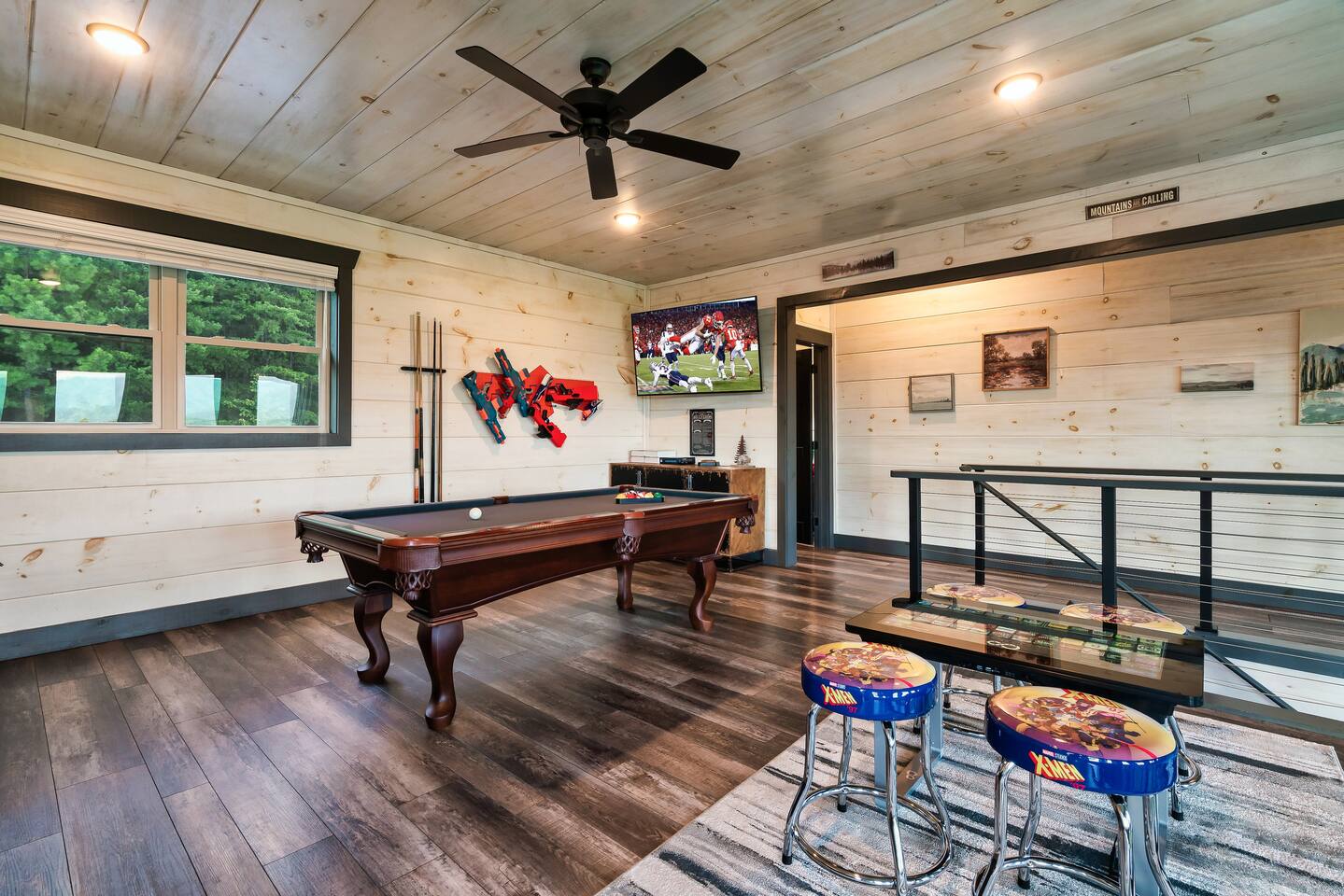 ๐๐ Special Oct discounts ๐๐ ๐ A fabulous fall retreat awaits! ๐ NEW UPGRADES: ๐ Infinity Arcade1Up and Nerf gun wall ๐น๏ธ ๐ Fire pit ๐ฅ ๐ Gas BBQ grill ๐ ๐ Smart porch lights ๐ก ๐ High chair ๐ช ๐ Pack & play ๐๏ธ Stunning 5-BR cabin panoramic views ๐๏ธ perfect for reunions, group escapes ๐๐๏ธ โจ Indoor heated pool ๐โโ๏ธ โจ Game & Media rooms ๐ฎ ๐ฅ โจ Soak in hot tub or enjoy Clubhouse seasonal pool & gym ๐ ๐๏ธโโ๏ธ โจ 4 car driveway+street parking ๐๐๐๐