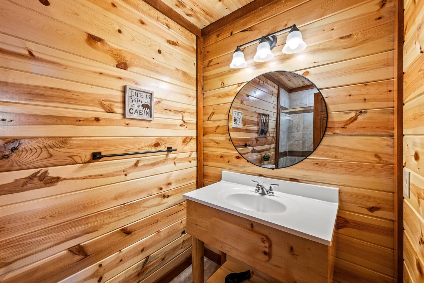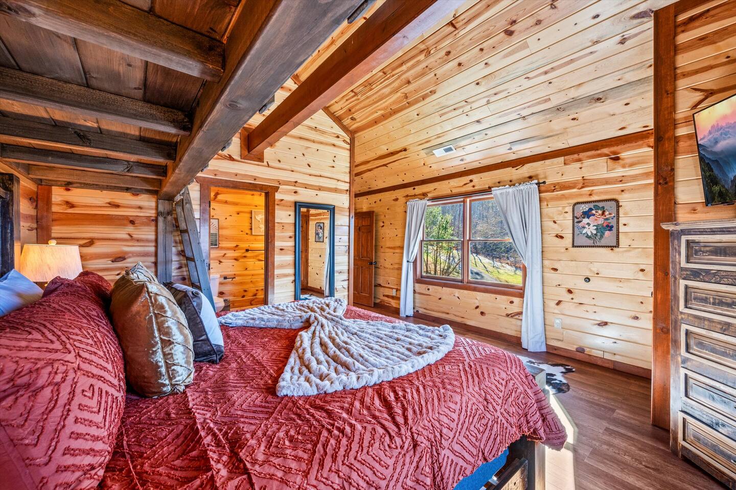 โบโบ Guest accessโบโบ Guests will enjoy exclusive access to the entire property. High-speed internet and all flat-screen TVs are equipped with streaming services. Private parking in front of the cabin accommodates up to four large vehicles. For your convenience and security, keyless entry is provided via a keypad at the front door, with your unique access code sent 48 hours before arrival and reset after each guest's stay.