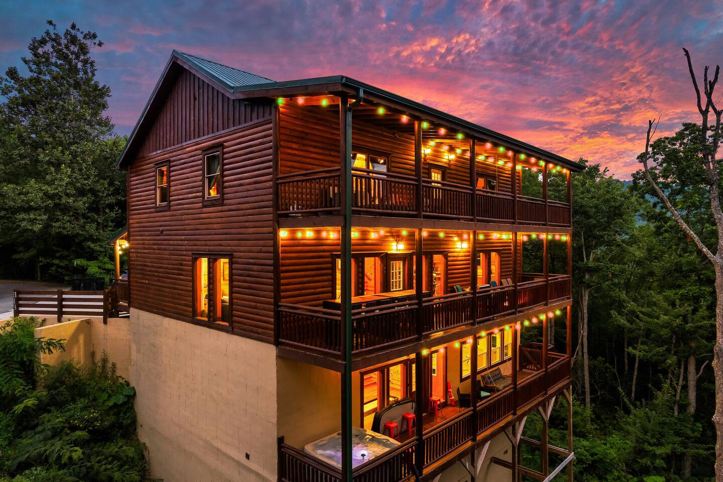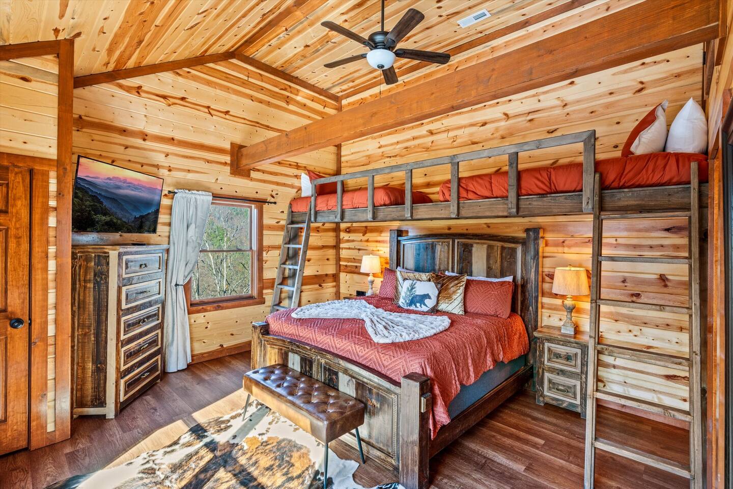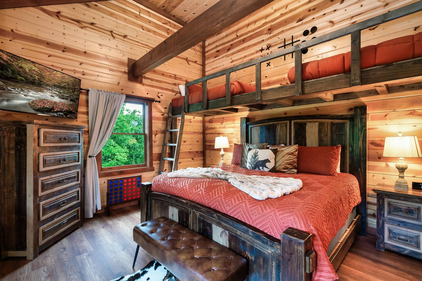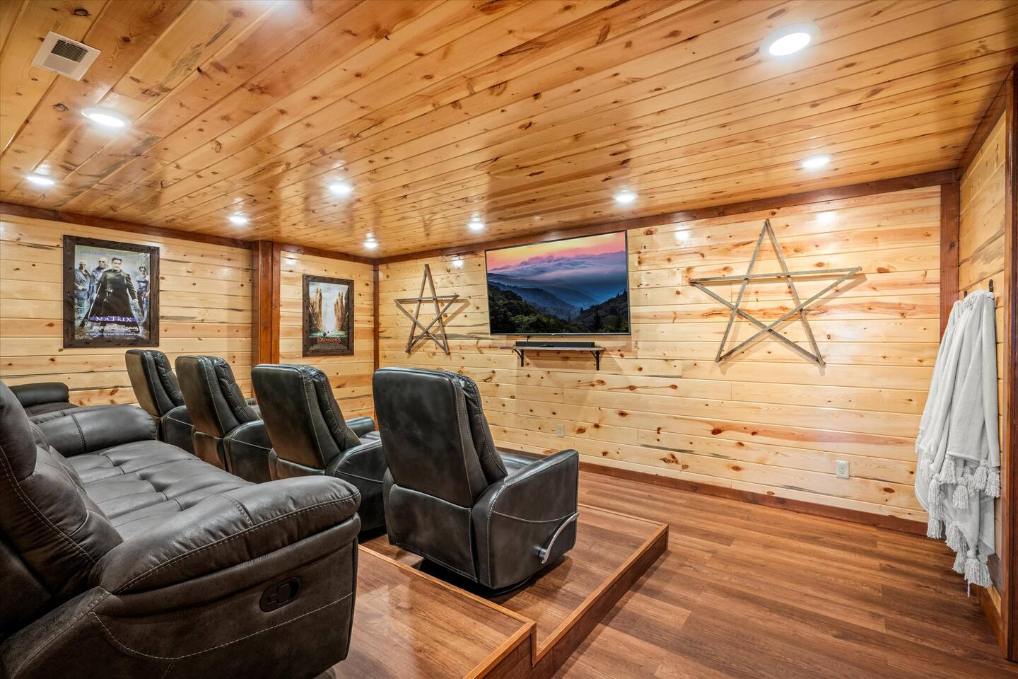 โฉโฉโฉโฉ Send an inquiry with your dates for additional discount for AUG-SEP! โฉโฉโฉโฉ โฃโฃโฃโฃโฃ NEW UPGRADES: ๐ฎ Infinity Gaming Table (100+ games including Game of Life, Monopoly) Nerf Gun Wall for epic battles ๐ฅ Gas Fire Pit ๐ก Smart Porch Lighting on 2 Back Porches + Front โ perfect for holiday sparkle & group gatherings ๐ผ๏ธ Fresh Artwork Throughout โ โฆand much more! ๐ธ & ๐ฒ Photos & prices updating by end of September โ take advantage now! โฃโฃโฃโฃโฃโฃโฃโฃโฃโฃโฃโฃโฃโฃโฃโฃโฃโฃโฃโฃโฃโฃโฃโฃโฃโฃโฃโฃโฃโฃโฃโฃโฃ โฆ Epic Memories Await in This Luxe 6BR Gatlinburg Cabin ๐ ฟ โฆ Welcome to your dream mountain escape! Our newly designed 6-bedroom, 6.5-bath luxury cabin is tucked in the heart of Gatlinburg, boasting 4,800+ sq ft of pure comfort, high-end style, & unforgettable Smoky Mountain views. Sleeps a crowd, but feels like home!! Whether you're planning a family reunion, friends getaway, or a peaceful retreat, this cabin delivers. โ Premium amenities guests love โ โบ Private indoor heated pool ๐ โ splash year-round! โบ Game room ๐ฎ(shuffle board, foosball, nerf gun wall, Infinity table with 100+ classic games) โบ media room ๐ฅ โ hours of family fun โบ 3 decks with a hot tub โจ๏ธ๐+ panoramic views โผ โพ โบ Massive private driveway โ park your RV, SUVs, trailers with ease โบ Chefโs kitchen ๐ฉโ๐ณ๐ณ โ gourmet meals, made easy โบ Seasonal outdoor pool access (Memorial Day to Labor Day) Whether you're chasing adventure, relaxation, or both โ this cabin has you covered. Dates fill fast โ book your Smoky Mountain escape today! PLEASE NOTE: Your booking is not confirmed until you review and sign a rental agreement ๐ and provide a $1,000 ๐ตrefundable security deposit at least 2 days before check-in (or immediately for last-minute bookings). If your arrival is within the next 2 days, please complete the registration steps right away โ this includes signing the rental agreement and submitting the deposit โ to secure your booking. โฃ Location โฃ Nestled in a prime location, this cabin offers the perfect blend of convenience and charm. Skip the traffic and enjoy being just minutes from downtown Gatlinburg, the Great Smoky Mountains National Park, and an array of must-see attractions. A short drive also connects you to the delights of Sevierville and Pigeon Forge, where more adventure and entertainment await. Immerse yourself in the beauty and excitement of the area with hiking, zip-lining, boutique shopping, and savoring the flavors of local cuisine โ all within easy reach. โบโบ Key attractions โบโบ ๐ Ripleyโs Aquarium of the Smokies โ 11 minutes (3.4 miles) Dolly Partonโs Stampede โ 13 minutes (5.8 miles) Great Smoky Mountains National Park โ 14 minutes (4 miles) This is your gateway to unforgettable experiences in the heart of the Smokies! โบโบ KEY FEATURES โบโบ โ Private Heated Indoor Pool โ Hot Tub on private deck with beautiful mountain views โ Large Game room: Foosball table, Shuffleboard table, Infinity 1UP Arcade table (100+ games), 1 Arcade game. โ Large movie room: Home theater โ 6 large King bedrooms each with ensuite/private bathroom. Upper level - one king bedroom has 2 twin bunk beds - perfect for kids (games: 4-in-a-row, tic-tac-toe). โ Large fully equipped kitchen with new appliances and open floor plan โ Spacious living room with large windows for views and natural light, gas fireplace, TV โ Spacious movie room designed for luxury and comfort. โ 3 private decks with sweeping views โ High-speed Internet โ AC/Heat โ Washer and Dryer โ ClubHouse access: with large pool and amenities Our spacious cabin comfortably sleeps 12 guests across 6 tastefully designed bedrooms, each with its own private bathroom for added privacy. Cooks will love the large fully equipped kitchen to whip up snacks or full meals. Welcoming living area with lots of natural light and plenty of space is ideal to catch a game on TV, or to just catch up by the fireplace. Step outside onto the expansive decks, where you'll be greeted by breathtaking views of the Smoky Hills. Sip your morning coffee while watching the sunrise, or relax in the evening as the stars fill the sky. โบโบ BEDROOMSโบโบ The upper level has 4 bedrooms and the main level has 2. Each bedroom has ample natural light and spacious layout, a closet with hangers and/or drawer chests to arrange clothes, a flat screen SMART TV for entertainment, and plush beddings and linens for comfort. On the upper floor - a king bedroom with two twin bunk beds above the king bed makes for a delightful space for children's adventures. โบโบ BATHROOMSโบโบ The 6.5 bathrooms are conveniently located across three levels with one half bath on the lower level easily accessible from the common areas like movie room, pool and game room. Six private ensuite bathrooms feature beautiful tile work, modern vanities, and walk-in showers. โบโบ KITCHEN AND LOUNGEโบโบ Enjoy preparing meals in the spacious kitchen with stainless steel appliances, a large island, and ample pantry storage. From making quick snacks at the island to a full holiday meal around the formal dining table, this kitchen has all the essentials you will need. Appliances include a coffee maker (both 12 cups and individual K-cups), a microwave, a stove, an oven. A house manual offers more details for you to plan your trip. Thanks to an open floor plan - even with a full house, the kitchen remains comfortable and functional for everyone. Just beyond the kitchen, step into the inviting living room space anchored by a large gas fireplace, a flat-screen TV, and a luxurious 