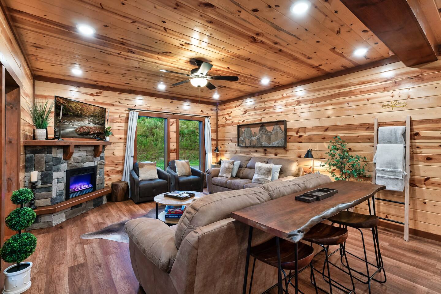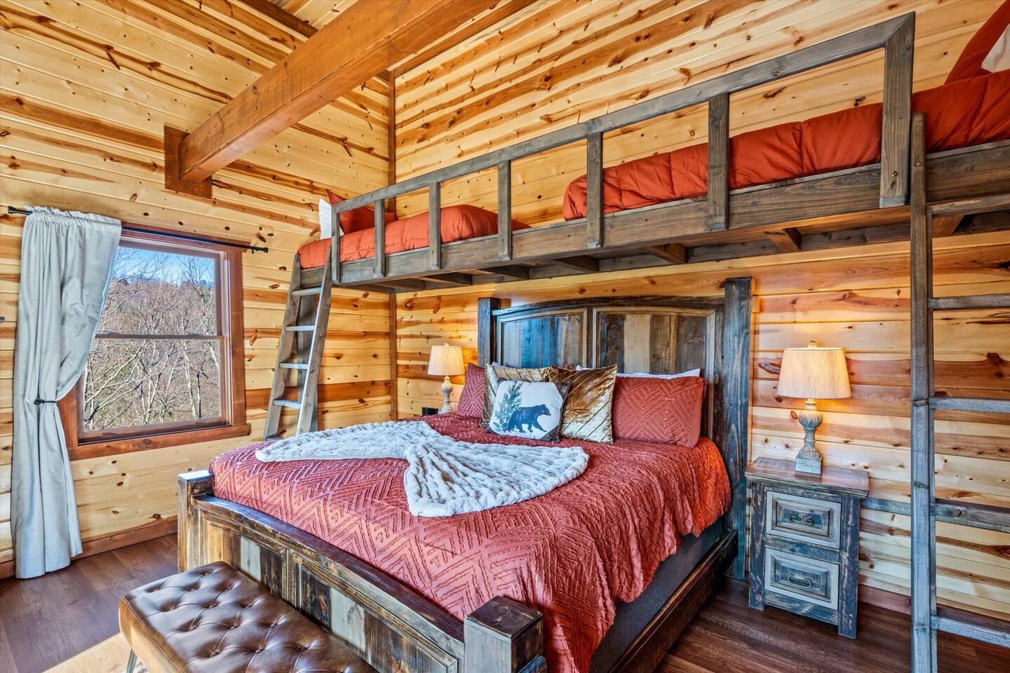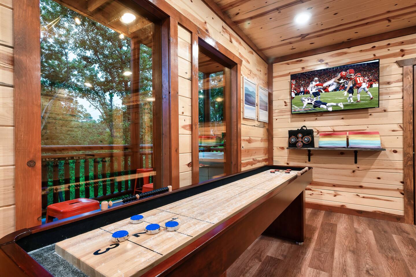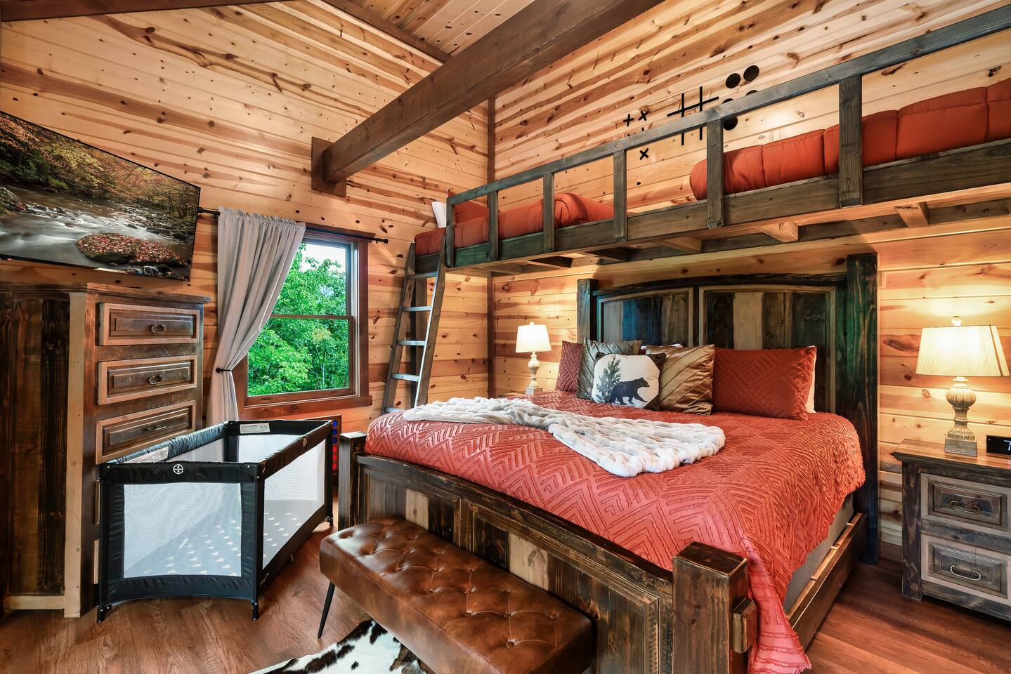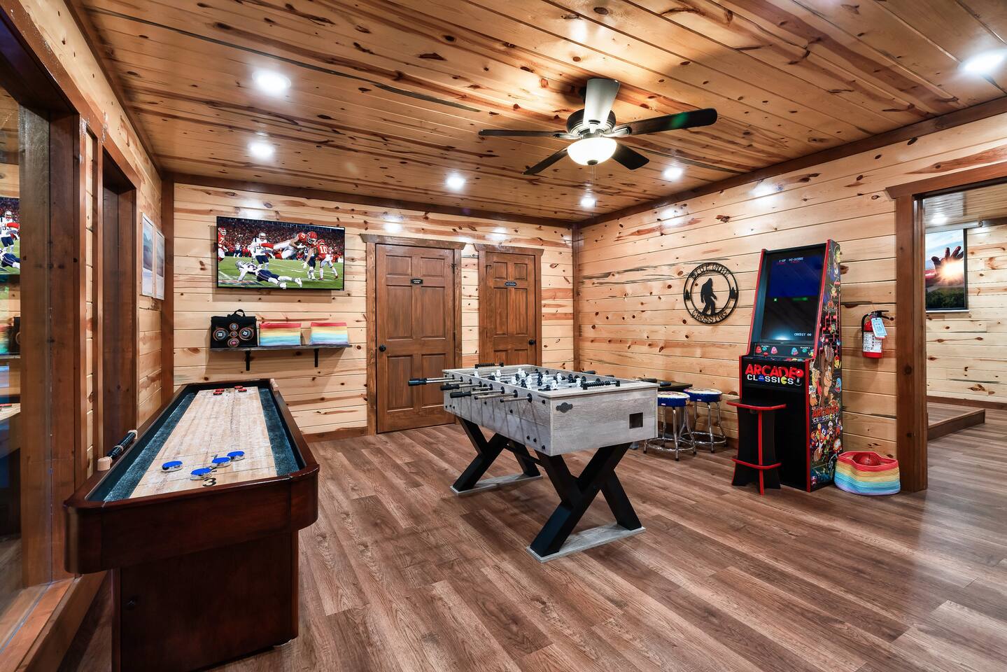 โฉโฉโฉโฉ Send an inquiry with your dates for additional discount for AUG-SEP! โฉโฉโฉโฉ โฃโฃโฃโฃโฃ NEW UPGRADES: ๐ฎ Infinity Gaming Table (100+ games including Game of Life, Monopoly) Nerf Gun Wall for epic battles ๐ฅ Gas Fire Pit ๐ก Smart Porch Lighting on 2 Back Porches + Front โ perfect for holiday sparkle & group gatherings ๐ผ๏ธ Fresh Artwork Throughout โ โฆand much more! ๐ธ & ๐ฒ Photos & prices updating by end of September โ take advantage now! โฃโฃโฃโฃโฃโฃโฃโฃโฃโฃโฃโฃโฃโฃโฃโฃโฃโฃโฃโฃโฃโฃโฃโฃโฃโฃโฃโฃโฃโฃโฃโฃโฃ โฆ Epic Memories Await in This Luxe 6BR Gatlinburg Cabin ๐ ฟ โฆ Welcome to your dream mountain escape! Our newly designed 6-bedroom, 6.5-bath luxury cabin is tucked in the heart of Gatlinburg, boasting 4,800+ sq ft of pure comfort, high-end style, & unforgettable Smoky Mountain views. Sleeps a crowd, but feels like home!! Whether you're planning a family reunion, friends getaway, or a peaceful retreat, this cabin delivers. โ Premium amenities guests love โ โบ Private indoor heated pool ๐ โ splash year-round! โบ Game room ๐ฎ(shuffle board, foosball, nerf gun wall, Infinity table with 100+ classic games) โบ media room ๐ฅ โ hours of family fun โบ 3 decks with a hot tub โจ๏ธ๐+ panoramic views โผ โพ โบ Massive private driveway โ park your RV, SUVs, trailers with ease โบ Chefโs kitchen ๐ฉโ๐ณ๐ณ โ gourmet meals, made easy โบ Seasonal outdoor pool access (Memorial Day to Labor Day) Whether you're chasing adventure, relaxation, or both โ this cabin has you covered. Dates fill fast โ book your Smoky Mountain escape today! PLEASE NOTE: Your booking is not confirmed until you review and sign a rental agreement ๐ and provide a $1,000 ๐ตrefundable security deposit at least 2 days before check-in (or immediately for last-minute bookings). If your arrival is within the next 2 days, please complete the registration steps right away โ this includes signing the rental agreement and submitting the deposit โ to secure your booking. โฃ Location โฃ Nestled in a prime location, this cabin offers the perfect blend of convenience and charm. Skip the traffic and enjoy being just minutes from downtown Gatlinburg, the Great Smoky Mountains National Park, and an array of must-see attractions. A short drive also connects you to the delights of Sevierville and Pigeon Forge, where more adventure and entertainment await. Immerse yourself in the beauty and excitement of the area with hiking, zip-lining, boutique shopping, and savoring the flavors of local cuisine โ all within easy reach. โบโบ Key attractions โบโบ ๐ Ripleyโs Aquarium of the Smokies โ 11 minutes (3.4 miles) Dolly Partonโs Stampede โ 13 minutes (5.8 miles) Great Smoky Mountains National Park โ 14 minutes (4 miles) This is your gateway to unforgettable experiences in the heart of the Smokies! โบโบ KEY FEATURES โบโบ โ Private Heated Indoor Pool โ Hot Tub on private deck with beautiful mountain views โ Large Game room: Foosball table, Shuffleboard table, Infinity 1UP Arcade table (100+ games), 1 Arcade game. โ Large movie room: Home theater โ 6 large King bedrooms each with ensuite/private bathroom. Upper level - one king bedroom has 2 twin bunk beds - perfect for kids (games: 4-in-a-row, tic-tac-toe). โ Large fully equipped kitchen with new appliances and open floor plan โ Spacious living room with large windows for views and natural light, gas fireplace, TV โ Spacious movie room designed for luxury and comfort. โ 3 private decks with sweeping views โ High-speed Internet โ AC/Heat โ Washer and Dryer โ ClubHouse access: with large pool and amenities Our spacious cabin comfortably sleeps 12 guests across 6 tastefully designed bedrooms, each with its own private bathroom for added privacy. Cooks will love the large fully equipped kitchen to whip up snacks or full meals. Welcoming living area with lots of natural light and plenty of space is ideal to catch a game on TV, or to just catch up by the fireplace. Step outside onto the expansive decks, where you'll be greeted by breathtaking views of the Smoky Hills. Sip your morning coffee while watching the sunrise, or relax in the evening as the stars fill the sky. โบโบ BEDROOMSโบโบ The upper level has 4 bedrooms and the main level has 2. Each bedroom has ample natural light and spacious layout, a closet with hangers and/or drawer chests to arrange clothes, a flat screen SMART TV for entertainment, and plush beddings and linens for comfort. On the upper floor - a king bedroom with two twin bunk beds above the king bed makes for a delightful space for children's adventures. โบโบ BATHROOMSโบโบ The 6.5 bathrooms are conveniently located across three levels with one half bath on the lower level easily accessible from the common areas like movie room, pool and game room. Six private ensuite bathrooms feature beautiful tile work, modern vanities, and walk-in showers. โบโบ KITCHEN AND LOUNGEโบโบ Enjoy preparing meals in the spacious kitchen with stainless steel appliances, a large island, and ample pantry storage. From making quick snacks at the island to a full holiday meal around the formal dining table, this kitchen has all the essentials you will need. Appliances include a coffee maker (both 12 cups and individual K-cups), a microwave, a stove, an oven. A house manual offers more details for you to plan your trip. Thanks to an open floor plan - even with a full house, the kitchen remains comfortable and functional for everyone. Just beyond the kitchen, step into the inviting living room space anchored by a large gas fireplace, a flat-screen TV, and a luxurious 
