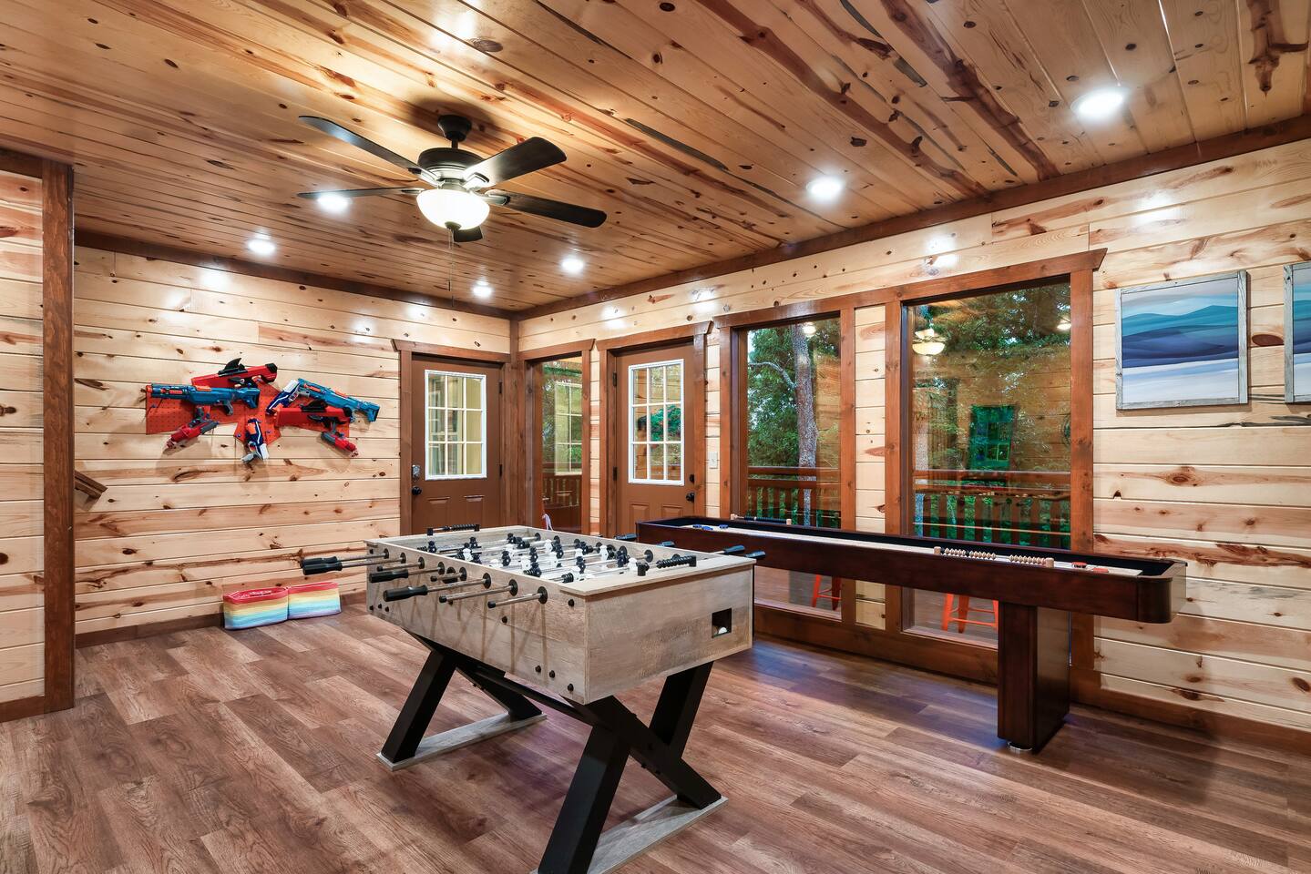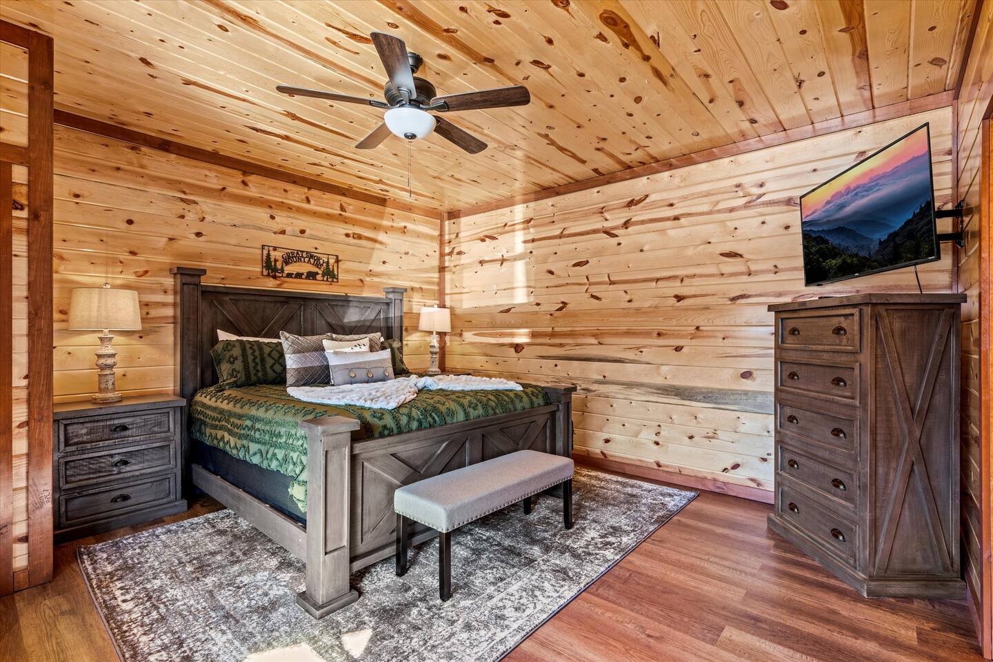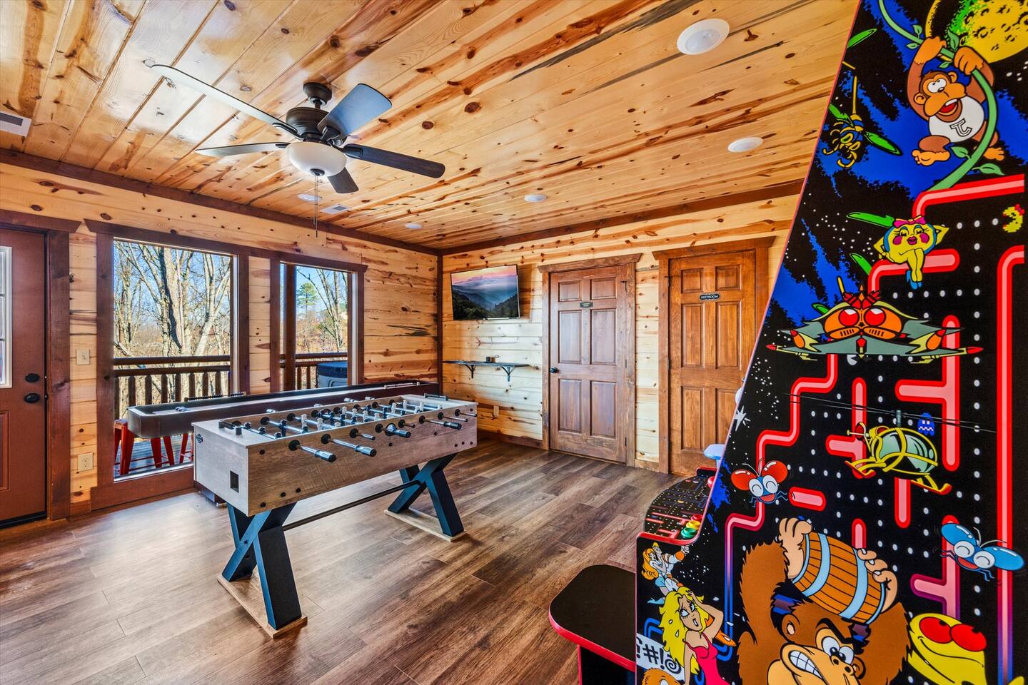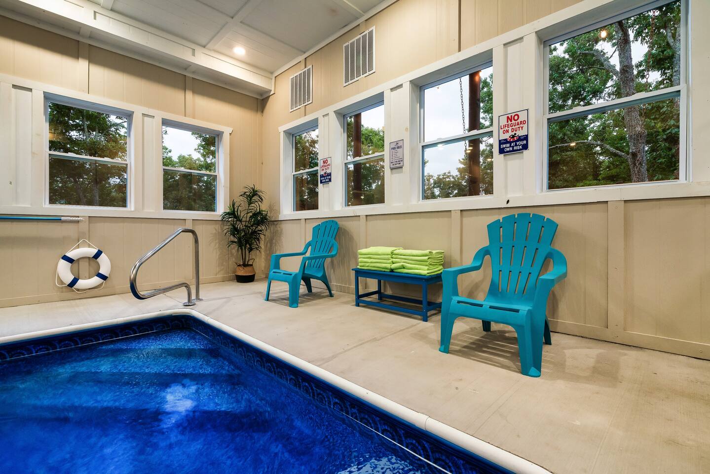 โฉโฉโฉโฉ Send an inquiry with your dates for additional discount for AUG-SEP! โฉโฉโฉโฉ โฃโฃโฃโฃโฃ NEW UPGRADES: ๐ฎ Infinity Gaming Table (100+ games including Game of Life, Monopoly) Nerf Gun Wall for epic battles ๐ฅ Gas Fire Pit ๐ก Smart Porch Lighting on 2 Back Porches + Front โ perfect for holiday sparkle & group gatherings ๐ผ๏ธ Fresh Artwork Throughout โ โฆand much more! ๐ธ & ๐ฒ Photos & prices updating by end of September โ take advantage now! โฃโฃโฃโฃโฃโฃโฃโฃโฃโฃโฃโฃโฃโฃโฃโฃโฃโฃโฃโฃโฃโฃโฃโฃโฃโฃโฃโฃโฃโฃโฃโฃโฃ โฆ Epic Memories Await in This Luxe 6BR Gatlinburg Cabin ๐ ฟ โฆ Welcome to your dream mountain escape! Our newly designed 6-bedroom, 6.5-bath luxury cabin is tucked in the heart of Gatlinburg, boasting 4,800+ sq ft of pure comfort, high-end style, & unforgettable Smoky Mountain views. Sleeps a crowd, but feels like home!! Whether you're planning a family reunion, friends getaway, or a peaceful retreat, this cabin delivers. โ Premium amenities guests love โ โบ Private indoor heated pool ๐ โ splash year-round! โบ Game room ๐ฎ(shuffle board, foosball, nerf gun wall, Infinity table with 100+ classic games) โบ media room ๐ฅ โ hours of family fun โบ 3 decks with a hot tub โจ๏ธ๐+ panoramic views โผ โพ โบ Massive private driveway โ park your RV, SUVs, trailers with ease โบ Chefโs kitchen ๐ฉโ๐ณ๐ณ โ gourmet meals, made easy โบ Seasonal outdoor pool access (Memorial Day to Labor Day) Whether you're chasing adventure, relaxation, or both โ this cabin has you covered. Dates fill fast โ book your Smoky Mountain escape today! PLEASE NOTE: Your booking is not confirmed until you review and sign a rental agreement ๐ and provide a $1,000 ๐ตrefundable security deposit at least 2 days before check-in (or immediately for last-minute bookings). If your arrival is within the next 2 days, please complete the registration steps right away โ this includes signing the rental agreement and submitting the deposit โ to secure your booking. โฃ Location โฃ Nestled in a prime location, this cabin offers the perfect blend of convenience and charm. Skip the traffic and enjoy being just minutes from downtown Gatlinburg, the Great Smoky Mountains National Park, and an array of must-see attractions. A short drive also connects you to the delights of Sevierville and Pigeon Forge, where more adventure and entertainment await. Immerse yourself in the beauty and excitement of the area with hiking, zip-lining, boutique shopping, and savoring the flavors of local cuisine โ all within easy reach. โบโบ Key attractions โบโบ ๐ Ripleyโs Aquarium of the Smokies โ 11 minutes (3.4 miles) Dolly Partonโs Stampede โ 13 minutes (5.8 miles) Great Smoky Mountains National Park โ 14 minutes (4 miles) This is your gateway to unforgettable experiences in the heart of the Smokies! โบโบ KEY FEATURES โบโบ โ Private Heated Indoor Pool โ Hot Tub on private deck with beautiful mountain views โ Large Game room: Foosball table, Shuffleboard table, Infinity 1UP Arcade table (100+ games), 1 Arcade game. โ Large movie room: Home theater โ 6 large King bedrooms each with ensuite/private bathroom. Upper level - one king bedroom has 2 twin bunk beds - perfect for kids (games: 4-in-a-row, tic-tac-toe). โ Large fully equipped kitchen with new appliances and open floor plan โ Spacious living room with large windows for views and natural light, gas fireplace, TV โ Spacious movie room designed for luxury and comfort. โ 3 private decks with sweeping views โ High-speed Internet โ AC/Heat โ Washer and Dryer โ ClubHouse access: with large pool and amenities Our spacious cabin comfortably sleeps 12 guests across 6 tastefully designed bedrooms, each with its own private bathroom for added privacy. Cooks will love the large fully equipped kitchen to whip up snacks or full meals. Welcoming living area with lots of natural light and plenty of space is ideal to catch a game on TV, or to just catch up by the fireplace. Step outside onto the expansive decks, where you'll be greeted by breathtaking views of the Smoky Hills. Sip your morning coffee while watching the sunrise, or relax in the evening as the stars fill the sky. โบโบ BEDROOMSโบโบ The upper level has 4 bedrooms and the main level has 2. Each bedroom has ample natural light and spacious layout, a closet with hangers and/or drawer chests to arrange clothes, a flat screen SMART TV for entertainment, and plush beddings and linens for comfort. On the upper floor - a king bedroom with two twin bunk beds above the king bed makes for a delightful space for children's adventures. โบโบ BATHROOMSโบโบ The 6.5 bathrooms are conveniently located across three levels with one half bath on the lower level easily accessible from the common areas like movie room, pool and game room. Six private ensuite bathrooms feature beautiful tile work, modern vanities, and walk-in showers. โบโบ KITCHEN AND LOUNGEโบโบ Enjoy preparing meals in the spacious kitchen with stainless steel appliances, a large island, and ample pantry storage. From making quick snacks at the island to a full holiday meal around the formal dining table, this kitchen has all the essentials you will need. Appliances include a coffee maker (both 12 cups and individual K-cups), a microwave, a stove, an oven. A house manual offers more details for you to plan your trip. Thanks to an open floor plan - even with a full house, the kitchen remains comfortable and functional for everyone. Just beyond the kitchen, step into the inviting living room space anchored by a large gas fireplace, a flat-screen TV, and a luxurious 